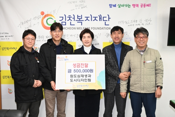| 김천복지재단은 12월 18일 원도심재생과 도시디자인팀(팀장 박세진)으로부터 이웃돕기 성금 50만 원을 기탁받았다고 밝혔다.