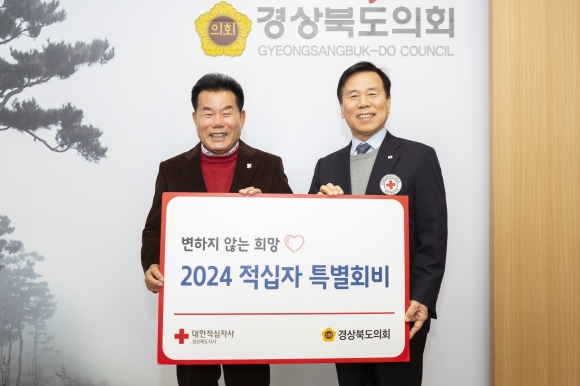 | 경상북도의회(의장 배한철)는 12월 18일 2024년도 적십자 특별회비를 대한적십자사 경북지사에 전달하며 연말 나눔문화 실천에 앞장섰다.