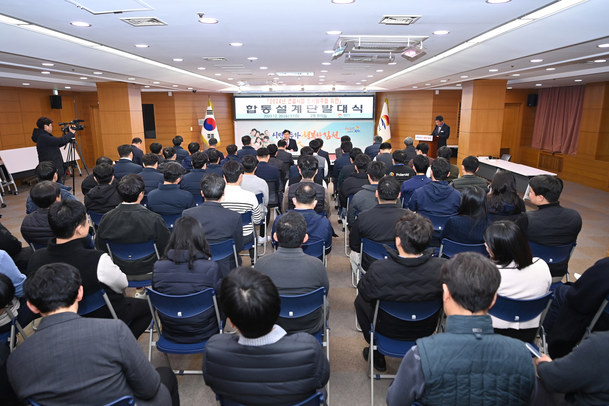 | 김천시는 12월 20일 지역경제 활성화를 위해 ‘2024년 건설사업 합동설계단’을 편성하고, 조기 발주를 위한 합동설계단 발대식을 개최하여 본격적인 운영에 들어갔다.