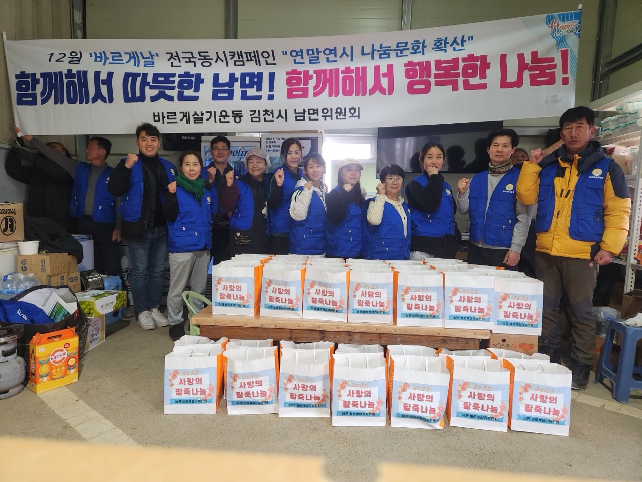 | 김천시 남면 바르게살기위원회(위원장 박미애)는 12월 20일, 바르게살기위원회 회원 10여 명이 참석한 가운데 홀로 사는 노인들을 위한 사랑의 팥죽 나눔 행사를 펼쳤다.