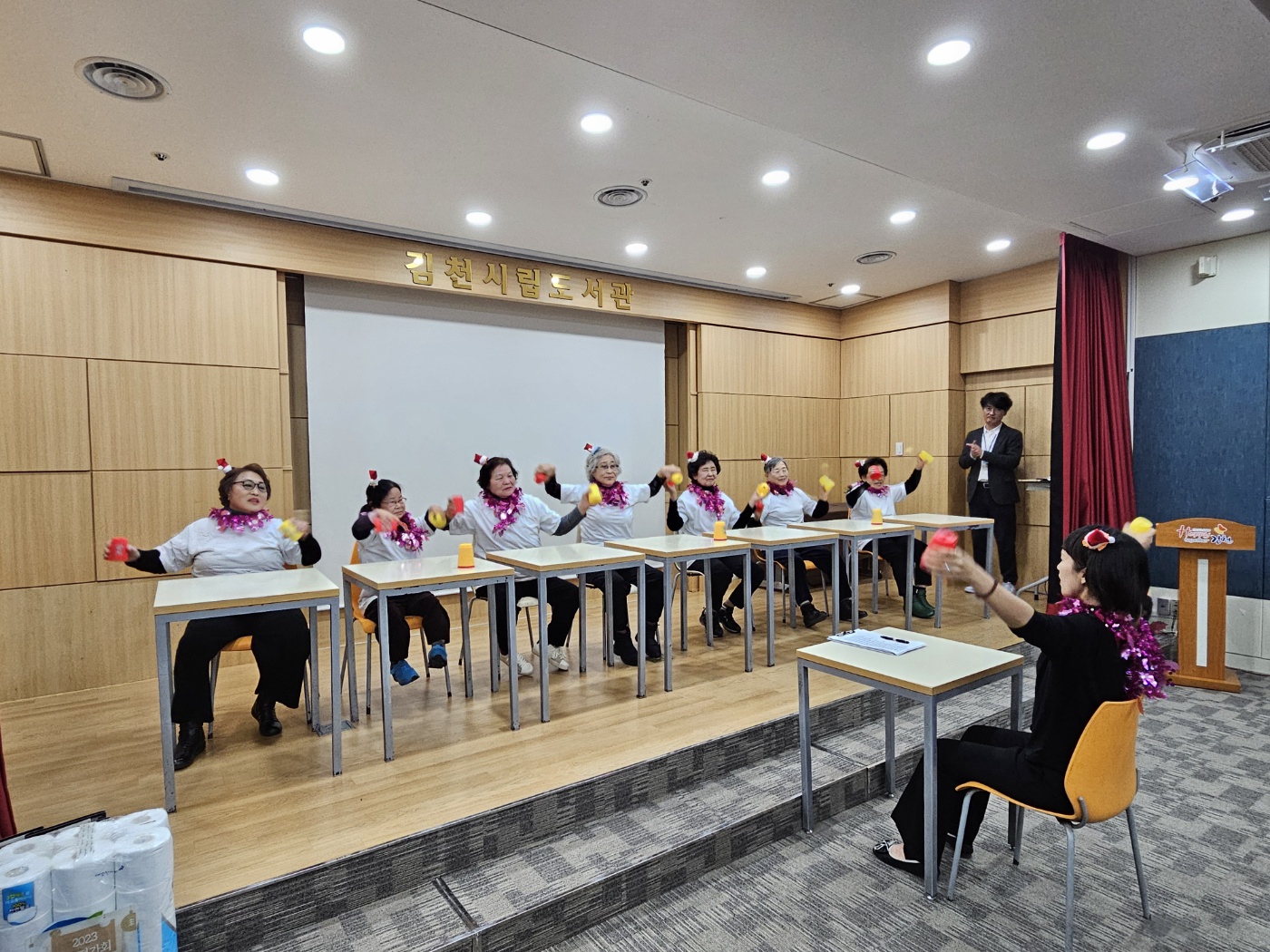 화합의 시간으로 하반기 여성장애인 건강증진사업으로 진행한 컵타 교실에 참여한 여성회원들이 그동안 갈고닦은 실력으로 직접 컵타 공연을을 펼침으로 피로에 지친 회원들에게 힐링의 시간을 선사하였으며 이규홍 강사와 함께 웃음의 효과에 대해 이야기 나누고 즐기며 업무평가회를 마무리하였다.