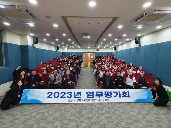 | (사)경북지체장애인협회 김천시지회(지회장 박희만)는 12월 21일 김천시립도서관에서 경상북도의회 행정보건복지위원회 박선하 부위원장, 김천시장애인종합복지관 안민 관장과 박희만 지회장, 임직원 및 회원 70여명이 참석한 가운데 ‘2023 업무평가회’를 실시하였다.