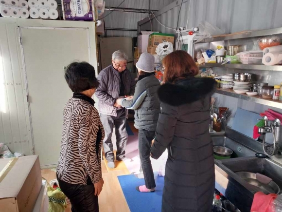이날, 추운 겨울 어려움을 겪고 있는 경로당 어르신들을 위해, 라면, 귤, 커피, 주방용품 등이 담긴 생필품 세트를 전달하여 따뜻한 정을 나누었다.