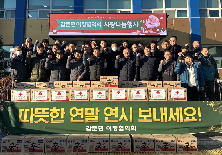 김희수 감문면 이장협의회장은 “최근 한파가 지속되고 있는데, 어려운 이웃들이 희망과 용기를 갖고 따뜻한 연말을 보낼 수 있도록 조금이나마 보탬이 되기를 바란다.”라고 말했다.