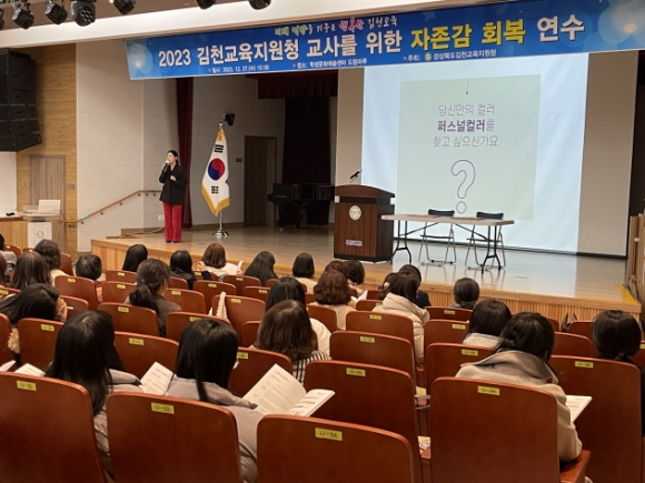 |  | | | ⓒ 김천내일신문 | | 김천교육지원청(교육장 공현주)은 12월 27일 학생문화예술센터 드림마루에서 관내 유·초·중·고 교사 145명을 대상으로 ‘교사를 위한 자존감 회복 프로그램’을 실시하였다.