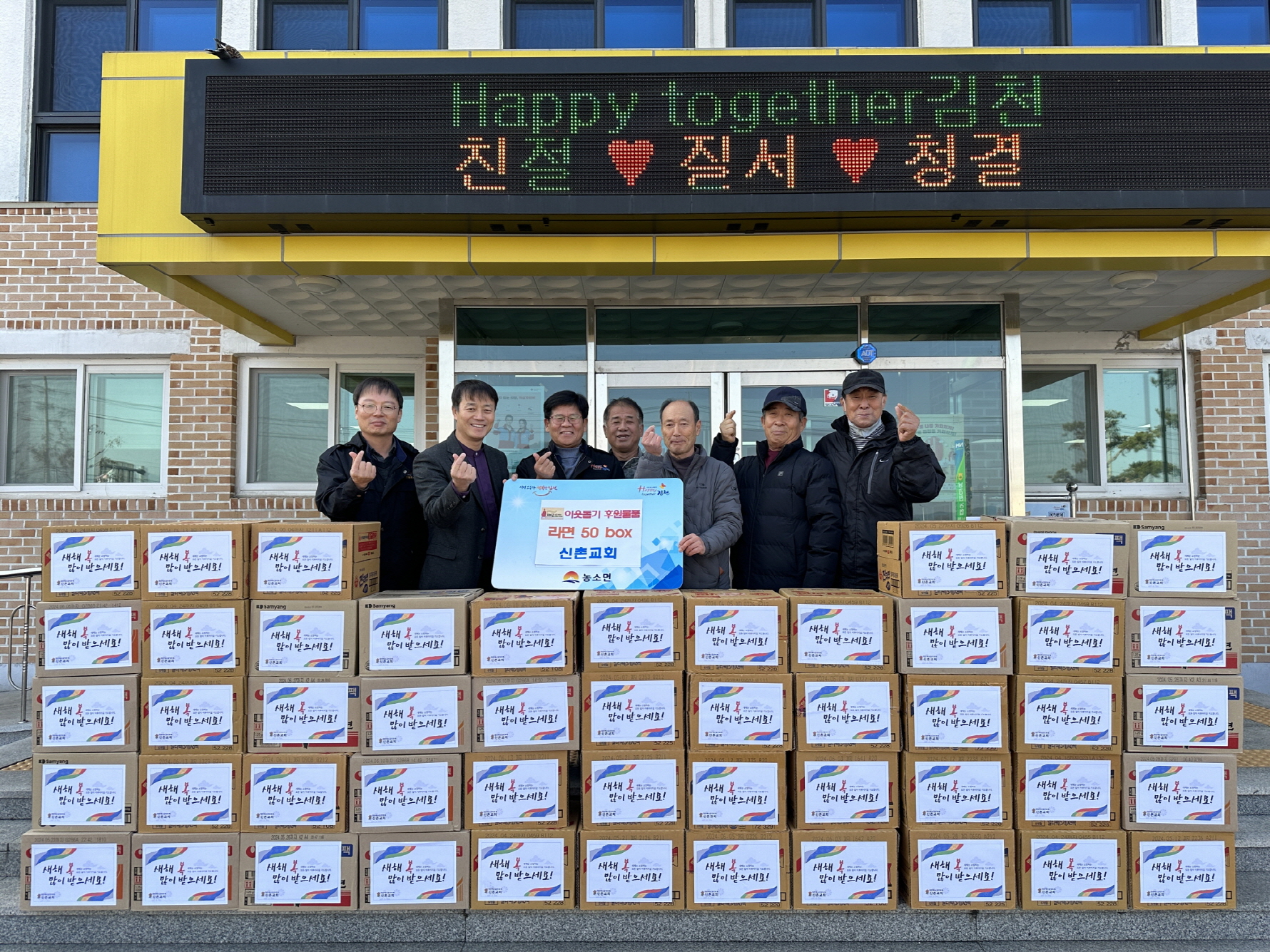 | 농소면 신촌교회(담임목사 김영수)는 지난 12월 27일 연말을 맞아 소외되고 어려운 이웃을 위해 농소면 행정복지센터에 라면 50상자를 맡기었다.