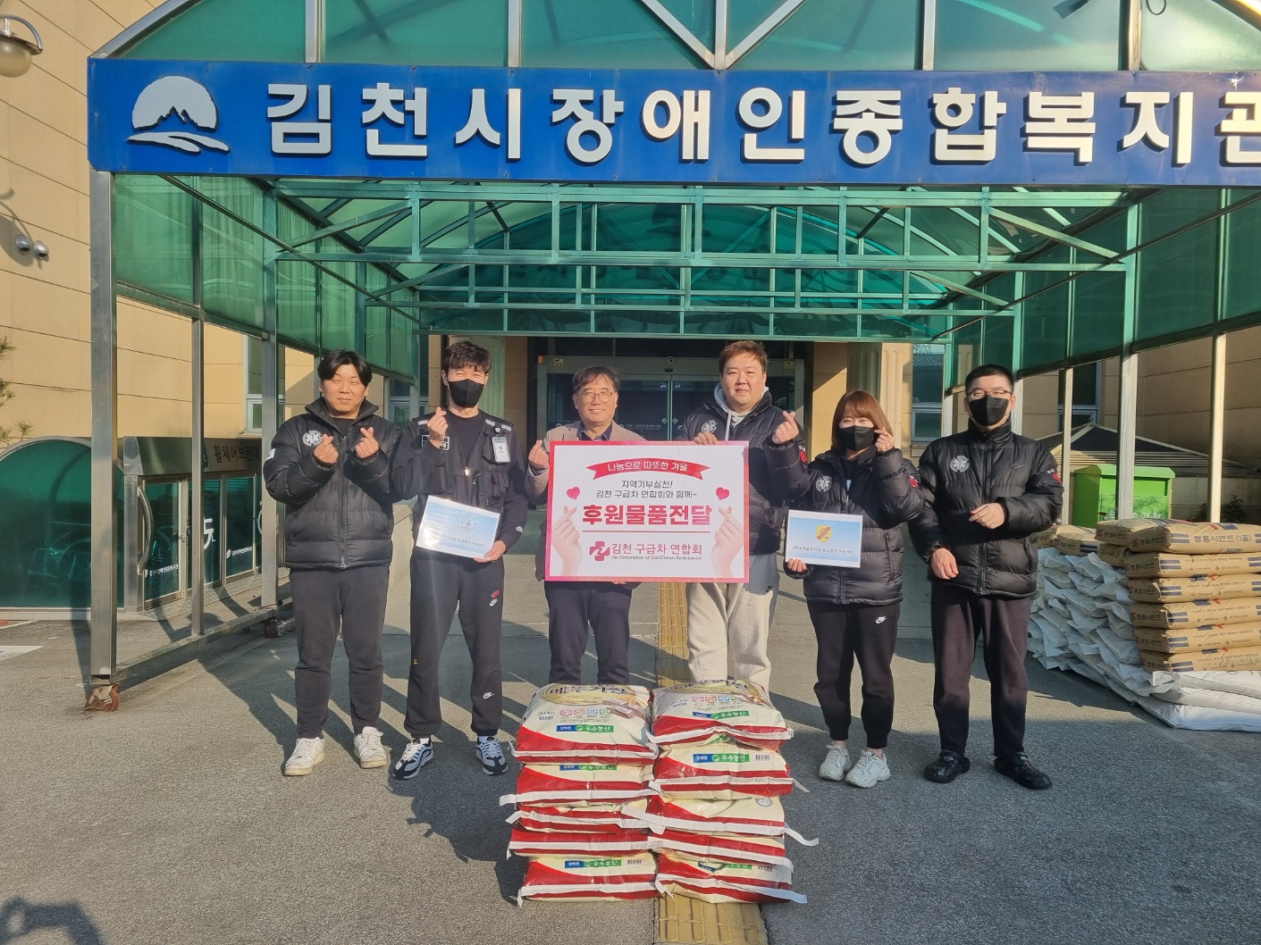 | 김천구급차연합회(이찬희 이사)는 지난 12월 27일 김천시장애인복지관(관장 안민)을 찾아 쌀10포대를 후원하며 따뜻한 연말나눔을 실천하였다.