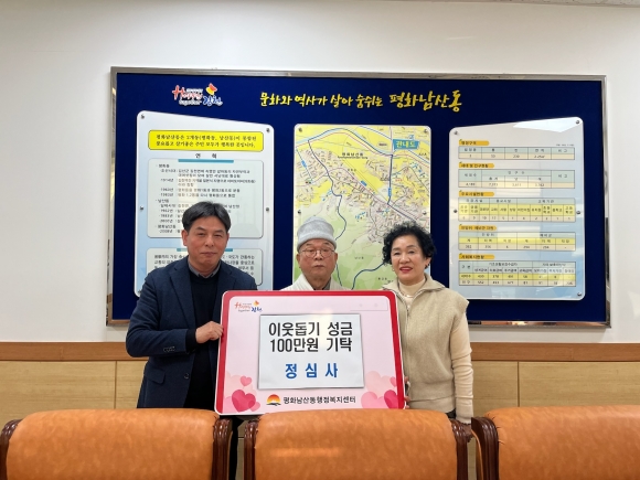 | 정심사(주지 보선 스님)에서는 연말을 맞아 지난 12월 27일 평화남산동 행정복지센터에 방문하여 어려운 이웃을 위한 사랑의 이웃돕기 성금 1,000,000원을 기탁했다.
