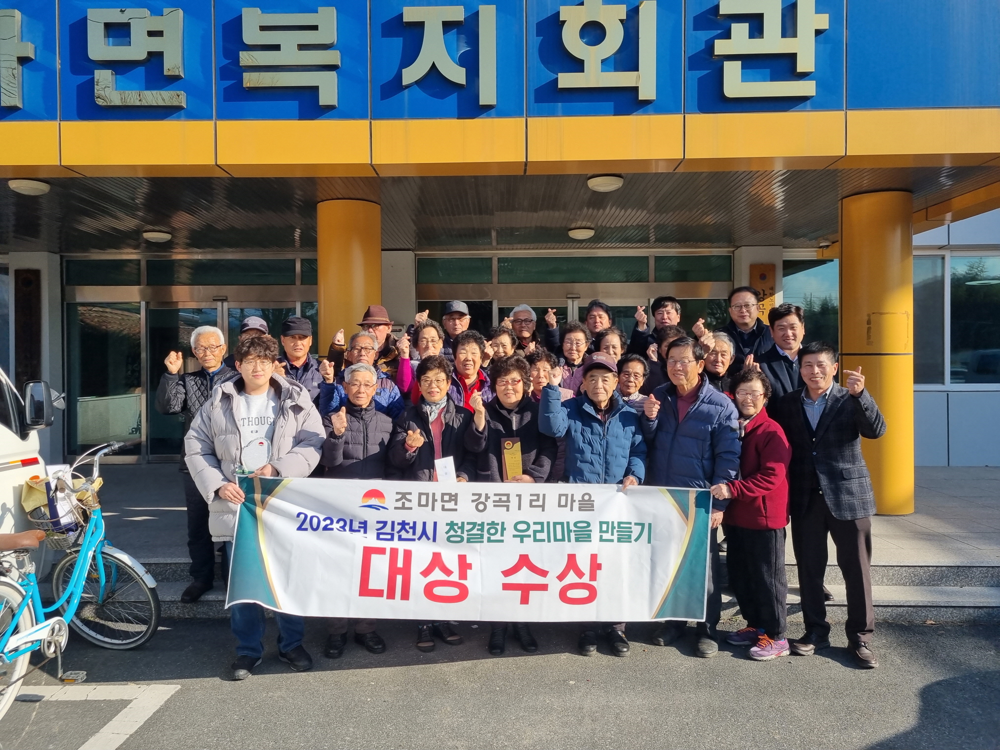 평가 결과, 마을청소 총 293회 실시, 마을 방치 쓰레기 등 104톤 처리하였고 총 5,124명이 청소에 참여하였으며, 대상은 조마면 강곡1리, 최우수 2개소는 감문면 상군마을, 부항면 월곡리, 우수 3개소는 감천면 소용마을, 농소면 월곡1리, 자산동 15통, 장려 3개소는 구성면 흥평1리, 어모면 남산2리, 개령면 광천1리가 수상하였다.
