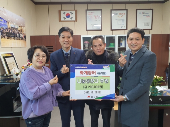 | 이날 율곡동에 소재한 맛집“화개장터”에서도 나눔냉장고 후원금으로 20만원을 기탁하며 훈훈한 나눔의 물결이 이어졌다.