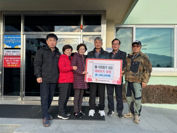 | 김천시 봉산면 태화리에 있는 해바라기 농원(농장주 김창규)은 지난 12월 29일 봉산면 행정복지센터를 찾아 관내 어려운 이웃들을 위해 써 달라며 봉산면 지역사회보장협의체 기금으로 100만 원을 냈다.