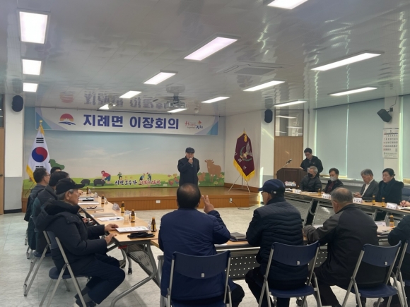 | 지례면 행정복지센터(면장 박용국)는 1월 4일 지례면 행정복지센터 2층 회의실에서 이장 18명과 기관장 등이 참석한 가운데 1월 이장협의회 정례회의를 개최했다.