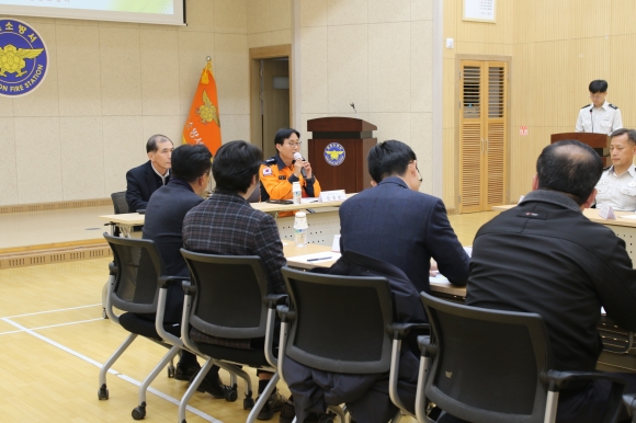 | 김천소방서(서장 안영호)는 1월 8일 소방공무원 및 소방안전협의회 임원 등 17명이 참석한 가운데 김천소방서와 소방안전협의회간 교류를 활성화하고, 자율 안전관리체계를 구축하기 위한 소방안전협의회 간담회를 가졌다고 밝혔다.
