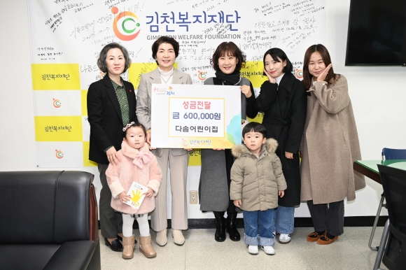 | 김천복지재단은 지난 1월 9일 다솜어린이집(원장 임현정)으로부터 이웃돕기 성금 60만 원을 전달받았다고 밝혔다.