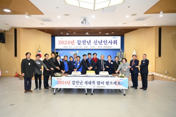 |  | | | ⓒ 김천내일신문 | | 김천시 권한대행 홍성구부시장은 지난1월4일 시청3층 대강당에서 김천청년회의소가 주최한 2024년도 신년인사회에 참석해 청룡의 해,2024년 갑진년(甲辰年) 새해 시민모두 건강하고, 올해는 승천하는 푸른 용의 기상처럼, 힘차게 비상하는 한 해가 되기를 기원했다. 홍성구 부시장은 지난해 우리 김천은 코로나 19에서 벗어나 일상을 되찾았으나, 세계경제의 복합적 위기와 전쟁의 여파 등 안팎으로 거센 불확실성에 의해 크고 작은 어려움을 겪었습니다. 하지만, 그동안 시민 여러분과 함께 그려온 미래비전과 목표를 향해 열심히 달려온 결과, 더 나은 김천을 위한 노력들이 하나 둘씩 결실을 맺는 한 해였다고 생각합니다. 최근 김천시는 일자리가 풍부한 산업도시, 농촌이 살아나는 농토피아,아이 낳고 키우기 좋은 맞춤형 복지도시, 균형 있게 발전하는 원도심과 혁신도시, 첨단산업을 선도하는 도시를 목표로 가슴 뛰는 미래 청사진을 실현해가고 있습니다. 김천1 일반산업단지 3단계가 준공 전 100% 분양 완료되면서 새 기업들이 들어오고 있으며, 연이은 4단계 조성사업을 추진하여, 양질의 일자리를 창출할 수 있는 토대를 마련하였고, 팬데믹으로 위축되었던 서민경제 활성화를 위해, 소상공인 특례보증 및 이차보전 지원 사업, 중소기업 운전자금 확대지원 사업 등을 적극 추진하여 채웠으며, 어떤 정책보다도 호응도가 좋았던 김천사랑상품권을 1,251억원 발행하여 민생에 작은 보탬이 되었습니다. 또한, 만성적인 농촌의 인력난 해소를 위해 원스톱 김천형 인력중개시스템을 운영하여 농번기 일자리를 지원하였고, 해외 판로개척을 위한 노력으로 경북 농식품 수출촉진대회에서 농식품 수출정책 대상을 수상하는 등 부자농촌 실현을 위한 탈출구를 모색하였습니다. 도로·철도 인프라 구축에도 지속적으로 투자하여, 국도대체우회도로 양천~대룡 구간을 준공하고 시청