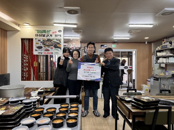 | 김천 황금시장 내 삼삼숯불갈비식당(대표 최진영)에서 지난 1월 3일부터 청소년의 방학을 맞아 한식 도시락 145개(174만 원 상당)를 기부했다.