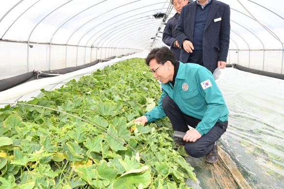 이날 홍성구 부시장은 감천면 참외재배 농가와 딸기재배 농가, 김천농협 농산물산지유통센터(APC)를 차례로 방문하여 생육환경과 공선과정 등을 살펴보며 영농현장의 애로사항을 청취하고 농민들을 격려했다.