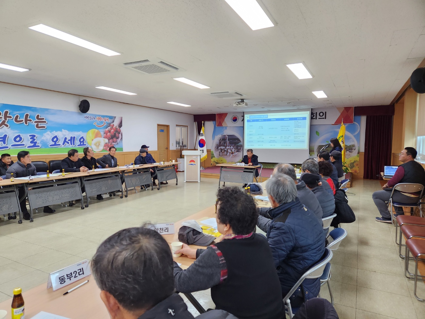 신영식 분회장의 진행으로 이루어진 이날 회의에서는 23년 결산보고, 분회 총무와 감사 선출, 각 경로당 신임 회장과 총무를 소개하고 환영하는 시간을 가지며 회원 간의 화합과 경로당 운영에 관한 의견을 나눴다. 또한, 2024년 경로당의 투명하고 명확한 보조금 집행을 위한 경로당 보조금 운영 지침 전달 교육을 하고 농촌지역 불법소각 근절을 위한 캠페인을 했다.