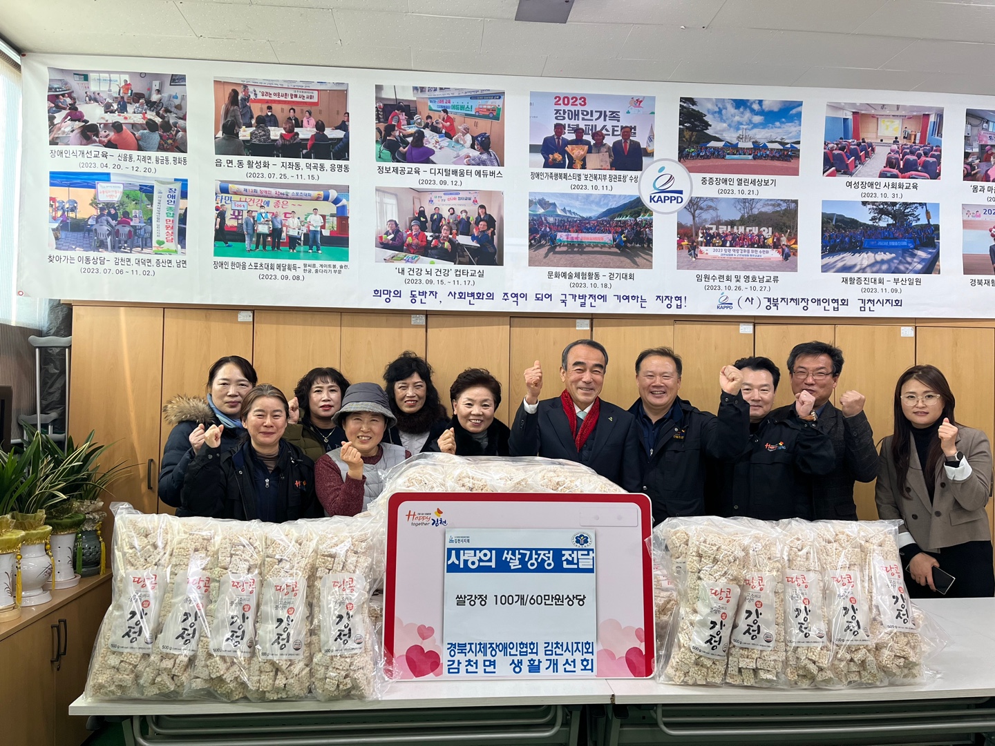 | 감천면 생활개선회(회장 유정연)는 지난 1월 24일, 경북지체장애인협회 김천시지회(지회장 김길영)에 쌀강정 100개(60만 원 상당)를 기부했다.
