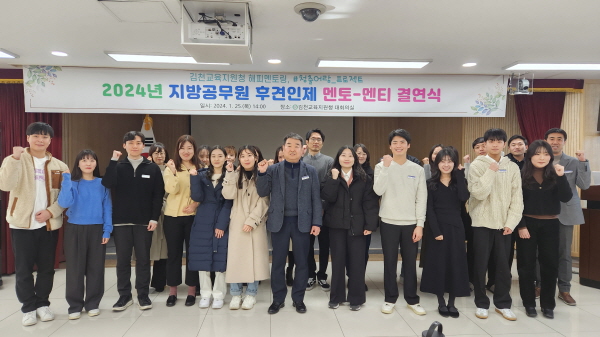 |  | | | ⓒ 김천내일신문 | | 경상북도김천교육지원청(교육장 공현주)은 1월 25일 김천교육지원청 대회의실에서 신규 공무원과 선배 공무원 30명이 참석한 가운데 지방공무원 후견인제 멘토-멘티 결연식을 개최했다.
