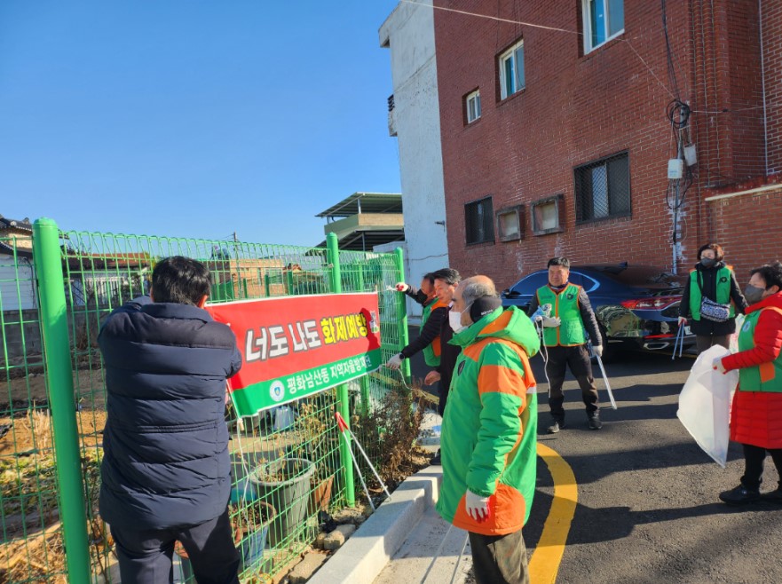| 평화남산동 행정복지센터(동장 김철환)에서는 지난 1월 25일 자율방재단 (단장 이창도) 단원 10여 명이 평화남산동 산불 예방 캠페인을 벌였다.