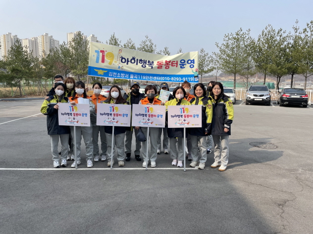 특히, 돌봄 양성교육을 수료한 여성 의용소방대원이‘119아이행복 돌봄터’에 배치, 아동 돌봄 업무 수행, 안전교육 프로그램 진행, 건강관리 등 다양한 돌봄 서비스를 제공하고 있다. 119아이행복돌봄터는 22년 10월부터 운영을 하여 22년에는 32명이 이용하였으며 23년에는 530명 이용하여 시민들의 많은 관심과 호응을 얻고 있으며, 이용 신청은 경북 소방본부, 김천소방서 홈페이지 또는 율곡119안전센터로 신청해 이용할 수 있다.
