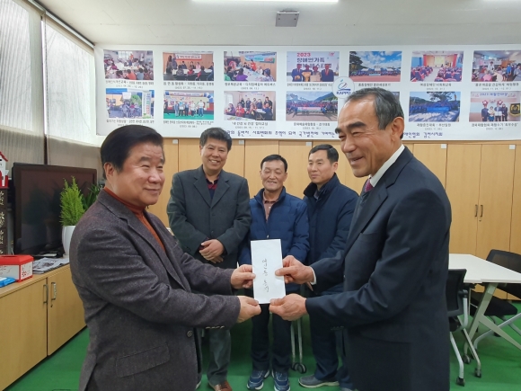 | 김천시 대신동 통장협의회(회장 최규탁)에서는 경북지체장애인협회 김천시지회를 방문하여 후원금 50만 원을 전달했다.