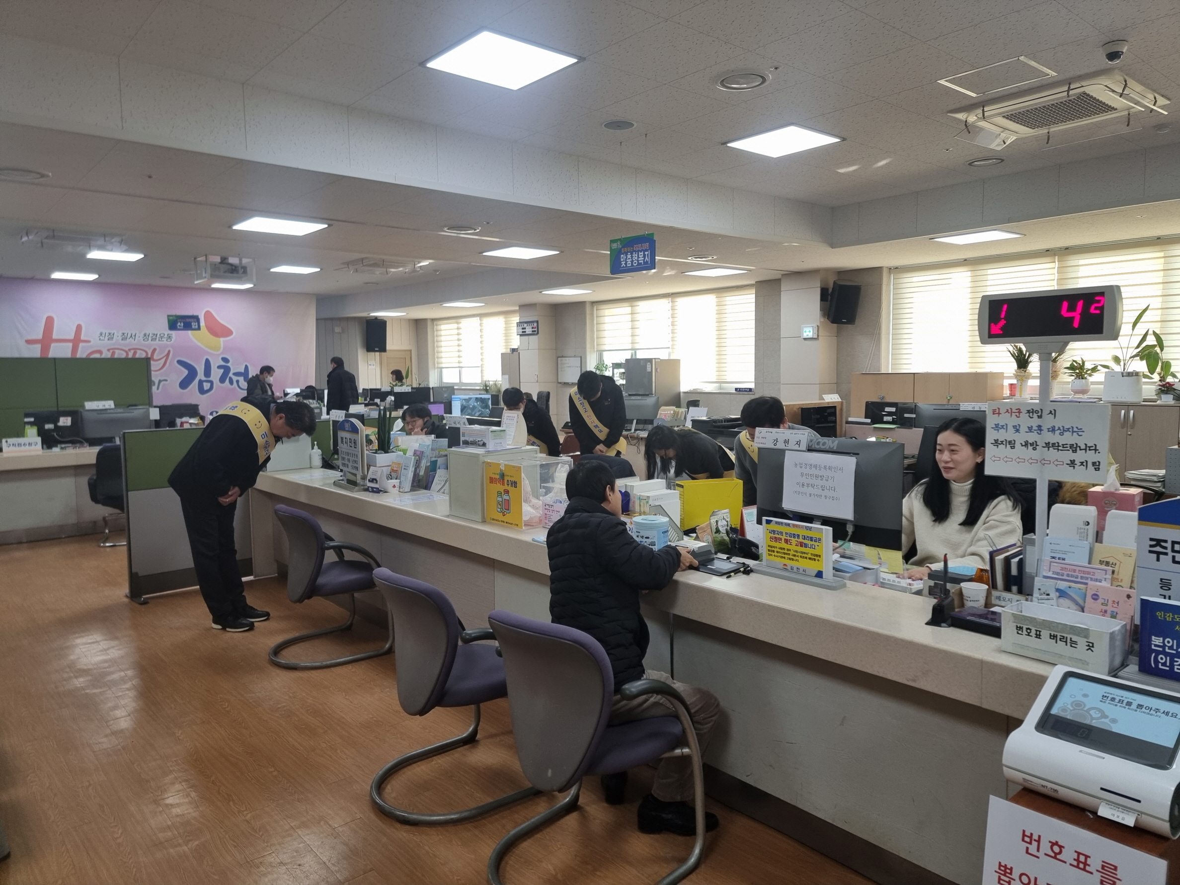 | 김천시 아포읍(읍장 김세종)은 2월 1일부터 매일 읍 청사를 방문하는 모든 고객에게 『미소 짓고 인사하기』 캠페인을 진행하며 따뜻한 미소와 친절, 정이 넘치는 아포읍 이미지를 만들기 위해 앞장선다.