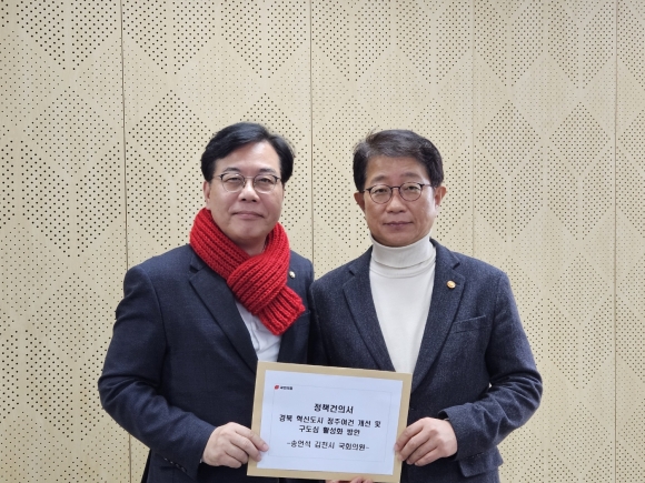 | 송언석 국회의원(경북 김천, 재선)이 2월 2일, 김천 혁신도시에서 박상우 국토교통부 장관을 만나, 혁신도시 정주(定住)여건 개선 및 구도심 활성화를 위한 정책협의를 진행했다.