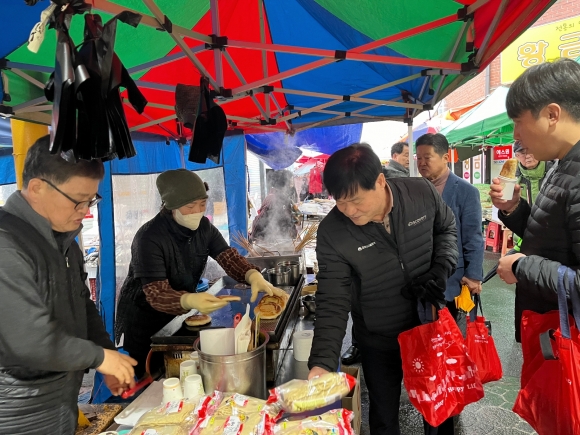 | 김천시 시설관리공단(이사장 김재광)은 지난 2월 5일 설 명절을 맞아 김천을 대표하는 전통시장 중 한 곳인 황금시장을 방문하여 장보기에 나섰다.