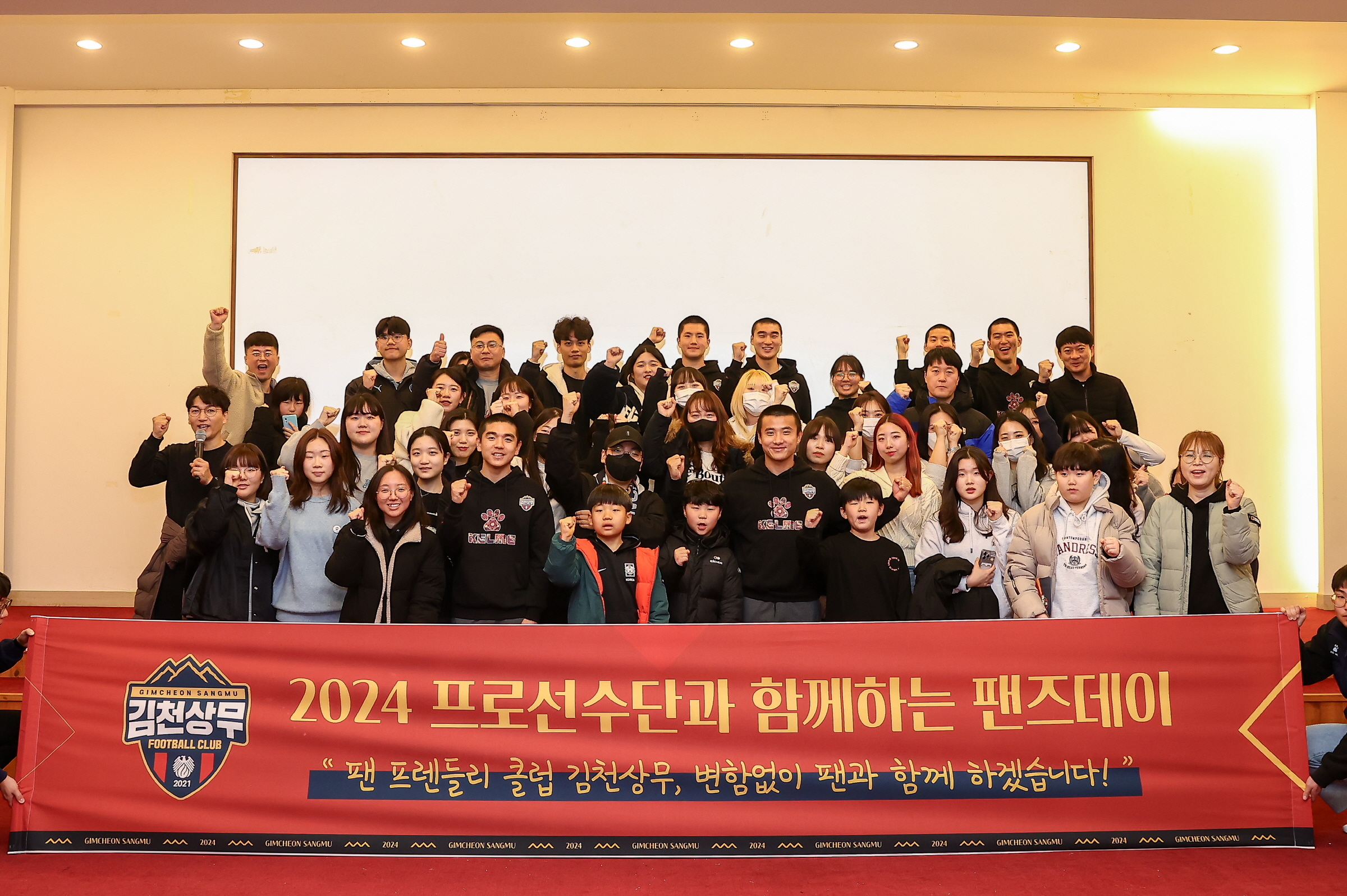 | 김천상무프로축구단(대표이사 배낙호)이 지난 2월 3일 부산 기장에서 열린 2024 팬즈데이 행사를 진행했다. 이날 행사에는 사전 모집에 선정된 팬 40명과 프로 선수단이 함께 했다.