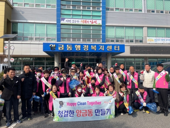 | 양금동 통장협의회(회장 정호동) 및 단체장협의회(회장 김태철)는 지난 2월 7일 설 명절을 맞이하여 ⌜Happy together 국토대청결활동⌟을 실시했다.