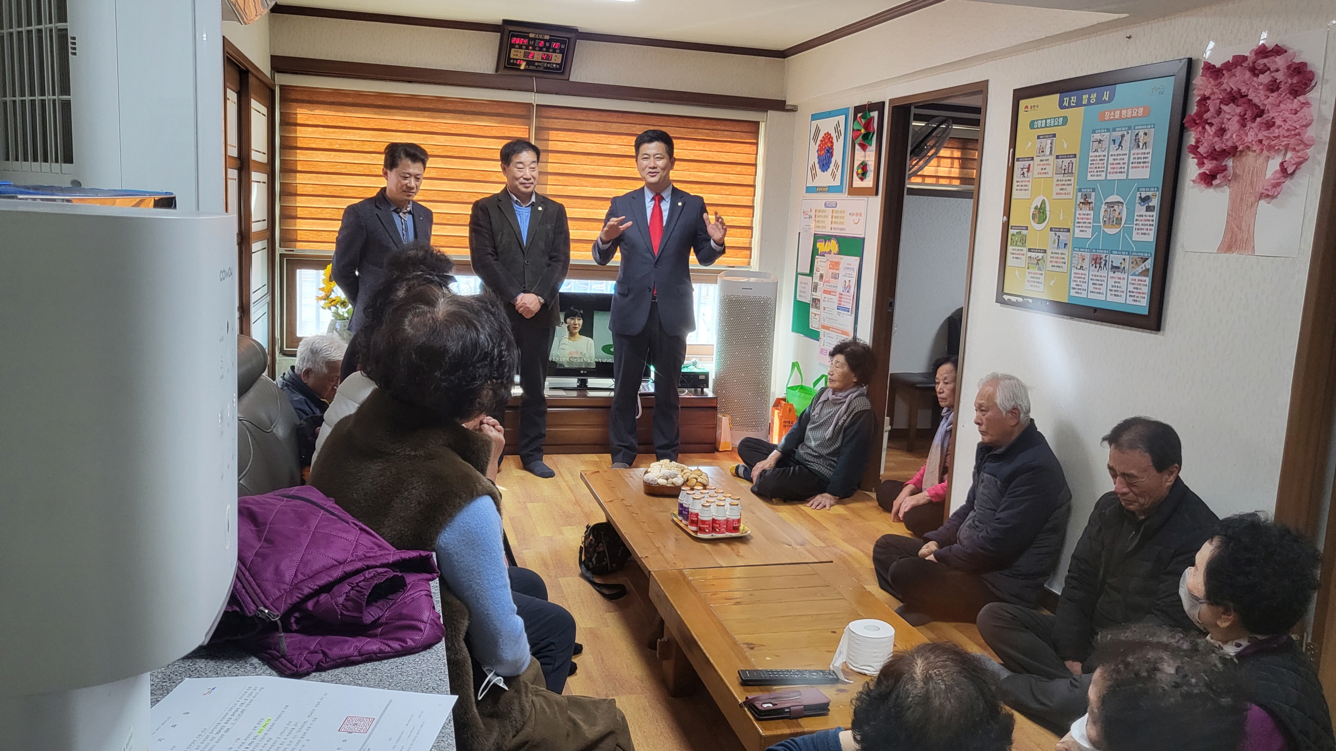 어르신들은 “날씨도 춥고 바쁜데 이렇게 찾아주어 고맙고 감사드린다. 노인복지에 대해 지속적인 관심과 지원을 바란다.”라고 말했다.