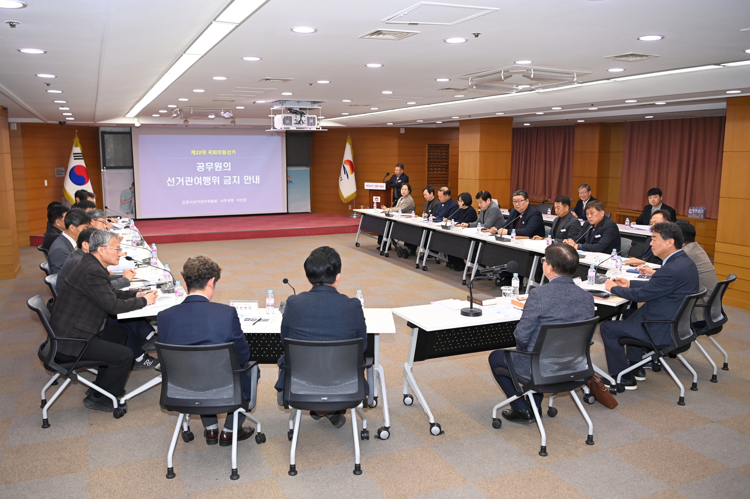 | 김천시는 오는 4월 10일 제22대 국회의원선거와 김천시의회 의원 재선거에 앞서 지난 15일 2층 회의실에서 읍면동장을 대상으로 ‘공직선거법 교육’을 진행했다.