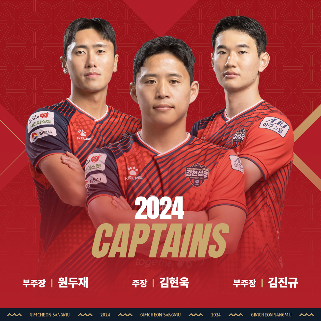 | 김천상무프로축구단이 2월 16일, 2024시즌 팀을 이끌 주장단을 선임했다. 주장에는 김현욱이 새롭게 선임되었으며, 부주장은 김진규와 원두재가 맡게 된다. 김천상무 7기로 구성된 주장단은 올 시즌 K리그1을 앞두고 각오를 내비쳤다.