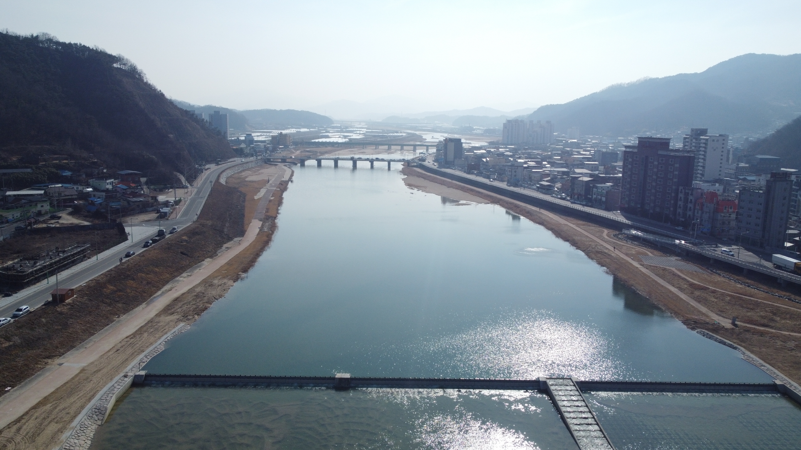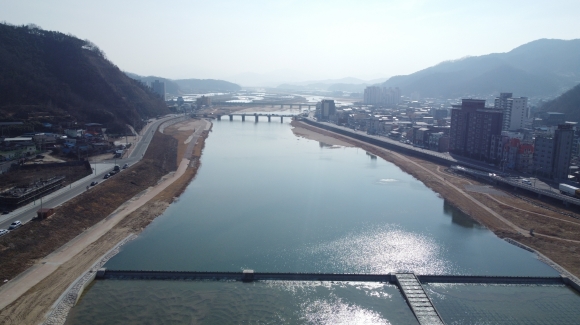 | 김천시(시장 김충섭)는 지난 2월 15일 감천 친수공간 조성사업을 완료하고 담수를 시작했다고 밝혔다. 감천 친수공간 조성사업은 하천수가 부족하고 모래가 퇴적되어 하상이 드러난 감천의 수량을 확보하고 도심구간을 상시로 담수하여 경관을 개선하기 위한 사업으로, 수위와 유량조절이 가능한 높이 1.5m, 폭 130m 규모의 가동보를 김천대교 인근에 설치했다.