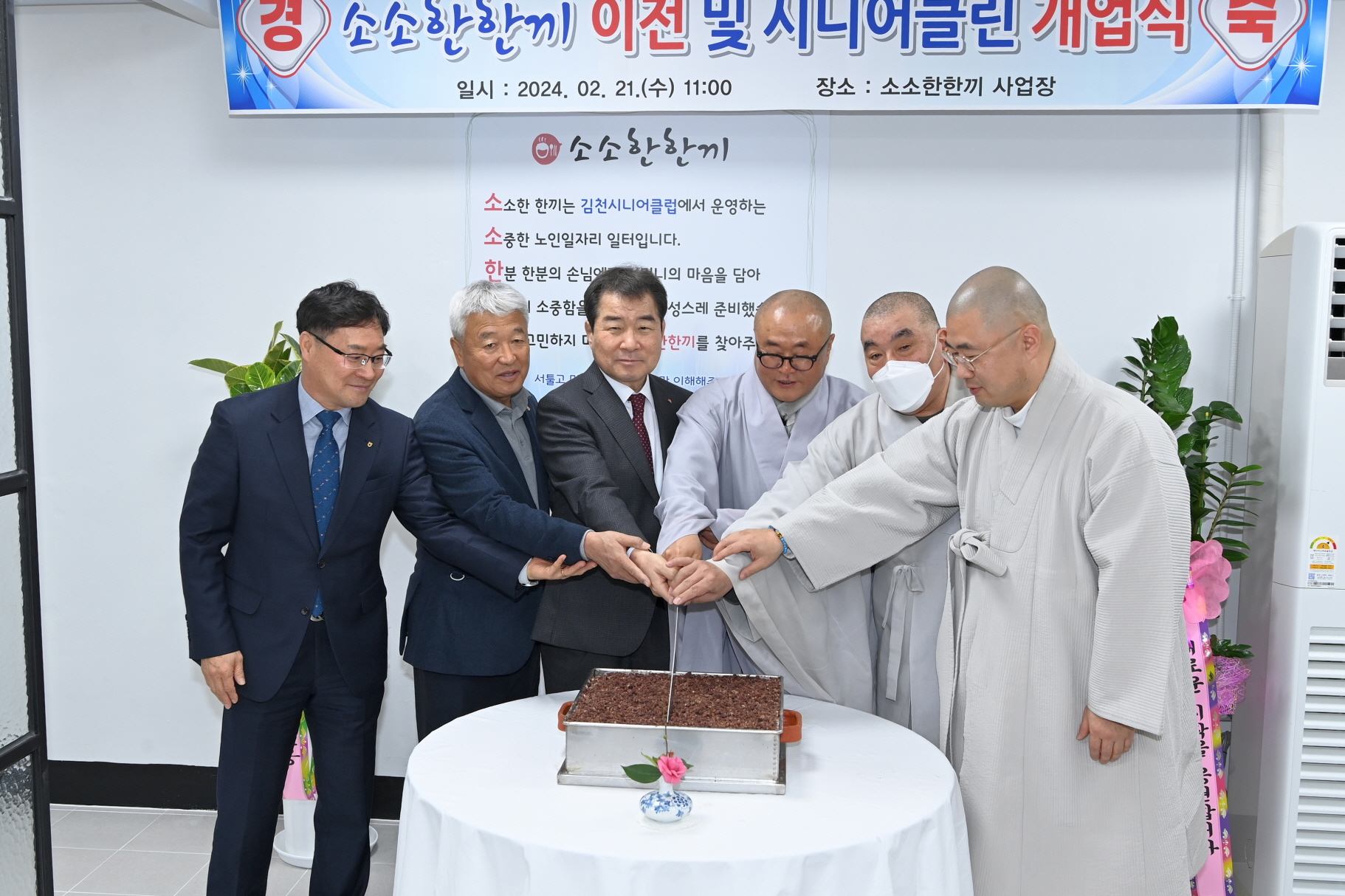 | 김천시니어클럽(관장 도신스님)이 지난 2월 21일 시장형 사업단 “소소한 한 끼” 확장 이전과 “시니어클린” 사업 개소식을 하고 본격적인 운영에 들어갔다.