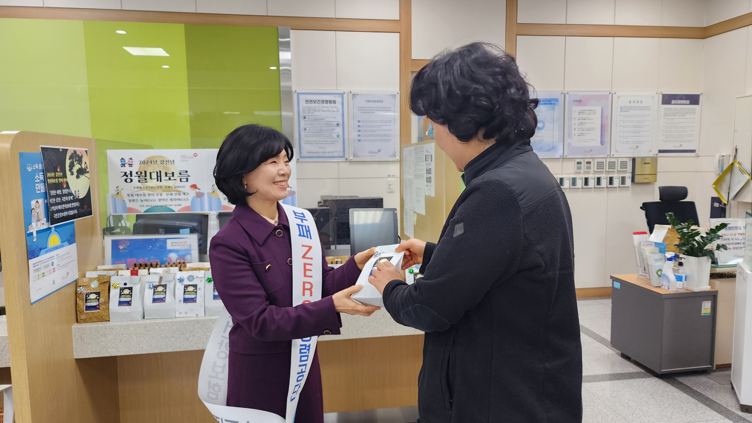 | 국민건강보험공단 김천지사(지사장 이선희)는 2월 23일 지사 종합민원실에서 방문고객 대상으로‘고객행복, 청렴실천’정월대보름 민속놀이와 부럼세트 전달 이벤트를 실시 해 좋은 호응을 받았다고 밝혔다.
