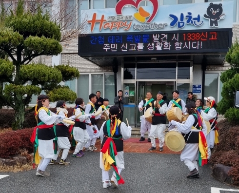 | 감천면 농악단(단장 강진규)은 정월대보름을 맞아 2월 23일부터 24일까지 이틀간 관내 기관과 마을 등을 돌며 면민의 안녕과 복을 비는 지신밟기 행사를 개최한다.