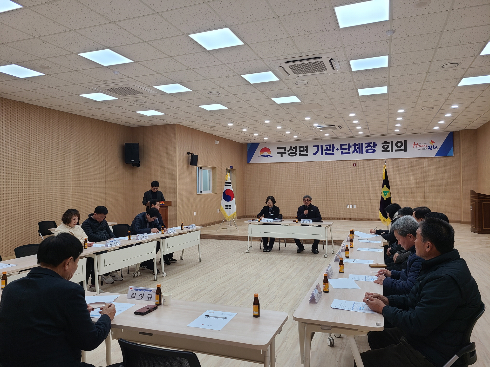 이날 회의에서는 면민들이 많이 참석할 수 있는 시기인 4월 말에 면 청사 준공식을 개최하기로 하였으며, 체력단련실 및 다목적실 등 복지회관은 운영위원회 구성과 세부 추진계획을 마련하여 운영하기로 했다. 또한, 도로변과 마을 주변에 무단투기 된 쓰레기를 수거하여 안전한 도로 환경 제공과 깨끗하고 쾌적한 구성면 만들기에 단체별로 동참하기로 했다.