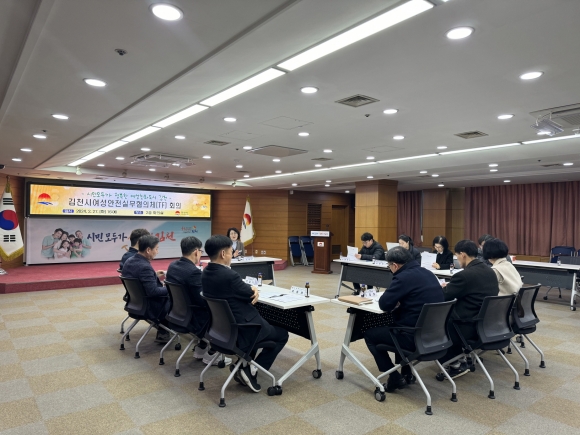| 김천시(시장 김충섭)는 2월27일 시청 2층 회의실에서 여성안전실무협의체 회의를 개최했다. 회의에는 경찰서, 소방서, 도시재생센터 등 관계기관과 민간단체 실무자로 구성된 총 14명의 위원이 참석해 기관별 안전 관련 사업을 소개하고, 김천시의 현안 보고 및 협력 안건 제안에 대해 위원 간 의견을 나눴다.