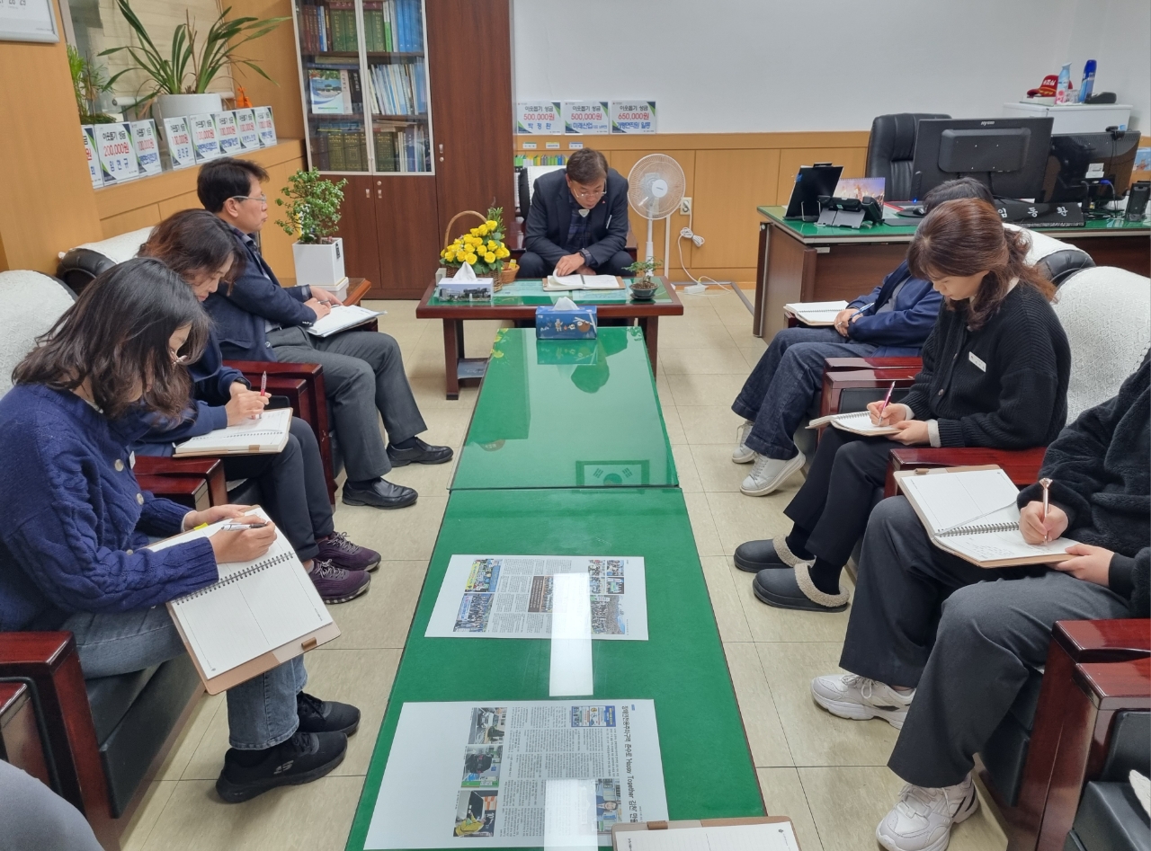 면장 주관으로 진행된 이번 교육에서는 제22대 국회의원 선거를 앞두고 청렴의 중요성과 민원인 대면 및 전화 응대 시 친절한 태도를 강조하였으며, 교육 후에는 활기찬 직장 분위기 조성을 위해 편안한 분위기 속에서 부서장과 직원 간 소통의 시간도 마련하여 서로 업무상 애로사항 등을 공유하며 뜻깊은 시간을 보냈다.