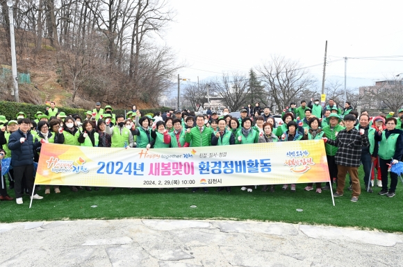 | 김천시는 2월 29일 오전, 새봄을 맞아 우리시를 찾는 관광객들에게 깨끗한 도시의 이미지를 제공하기 위해 민관이 함께 참여하는 새봄맞이 환경정비를 집중적으로 추진했다.