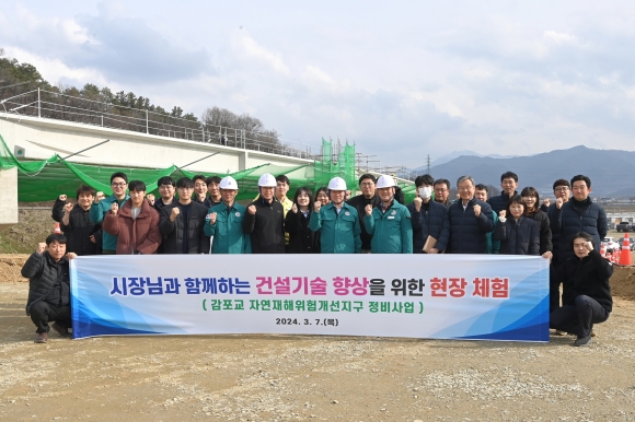 이날 현장점검에는 김천시청 소속 신규 기술직 공무원 20여 명이 함께 방문하여 교량 신공법에 대한 설명을 듣고 기술 역량 향상의 기회를 얻기도 했다.