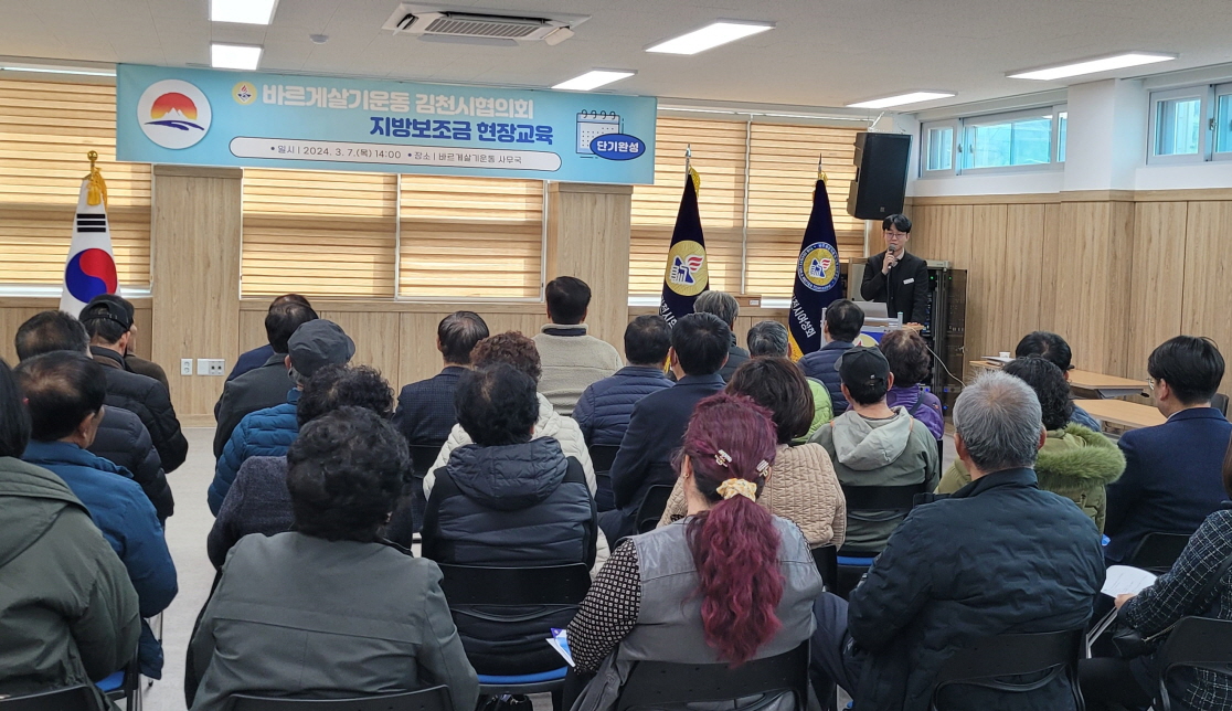 | 김천시는 3월 7일 바르게살기운동 사무국 회의실에서 지방보조금 사용자 현장 교육을 진행했다.