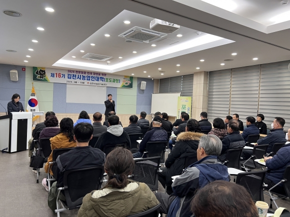 | 김천시는 지난 3월 5일 2024년 제16기 농업인대학 포도와 자두과정 입학식을 개최하고, 교육 과정 운영을 시작했다.