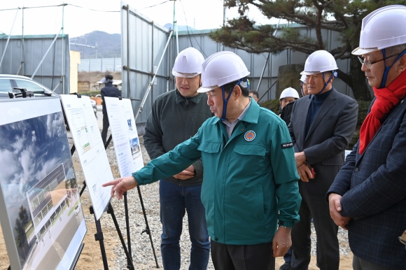 이번에 신축 중인 아포읍 행정복지센터는 올해 상반기 준공을 목표로 지하 1층 지상 3층 연면적 2,941㎡의 규모로 진행되고 있으며 현재 공정률은 약60%이다. 금번 공사 현장 점검의 주요 사항은 “해빙기 안전 점검을 통한 안전한 행정복지센터 조성”을 위해 사전 예방적 차원의 점검을 했다. 김충섭 김천시장은 현장을 방문하여 시공 과정과 안전관리에 대한 설명을 청취한 후 시민들에게 튼튼하고 안전한 아포읍 행정복지센터가 건축될 수 있도록 최선의 노력을 다할 것을 당부했다.