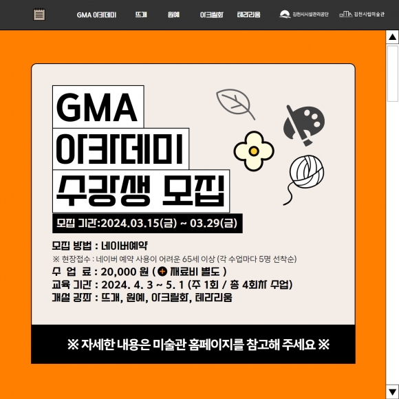 김천시립미술관 2024 교육 수강생 모집