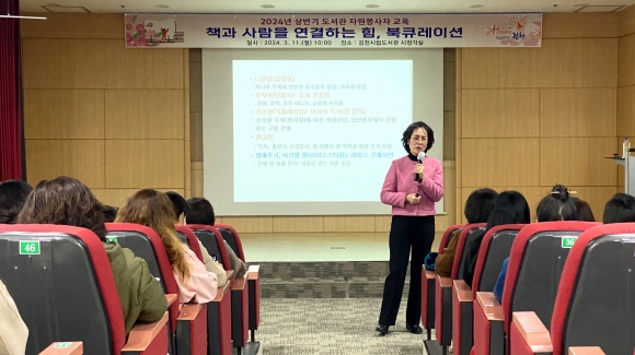 | 김천시립도서관(관장 이순영)에서는 지난 3월 11일 본관 시청각실에서 2024년 상반기 도서관 자원봉사자 교육을 개최했다.