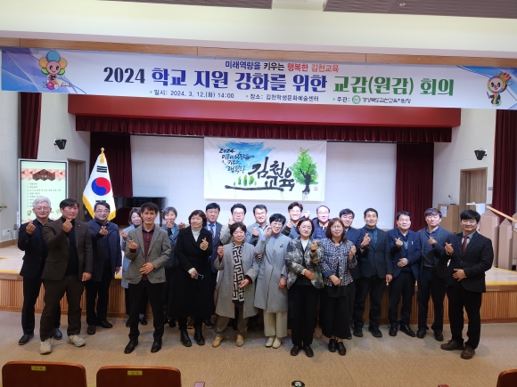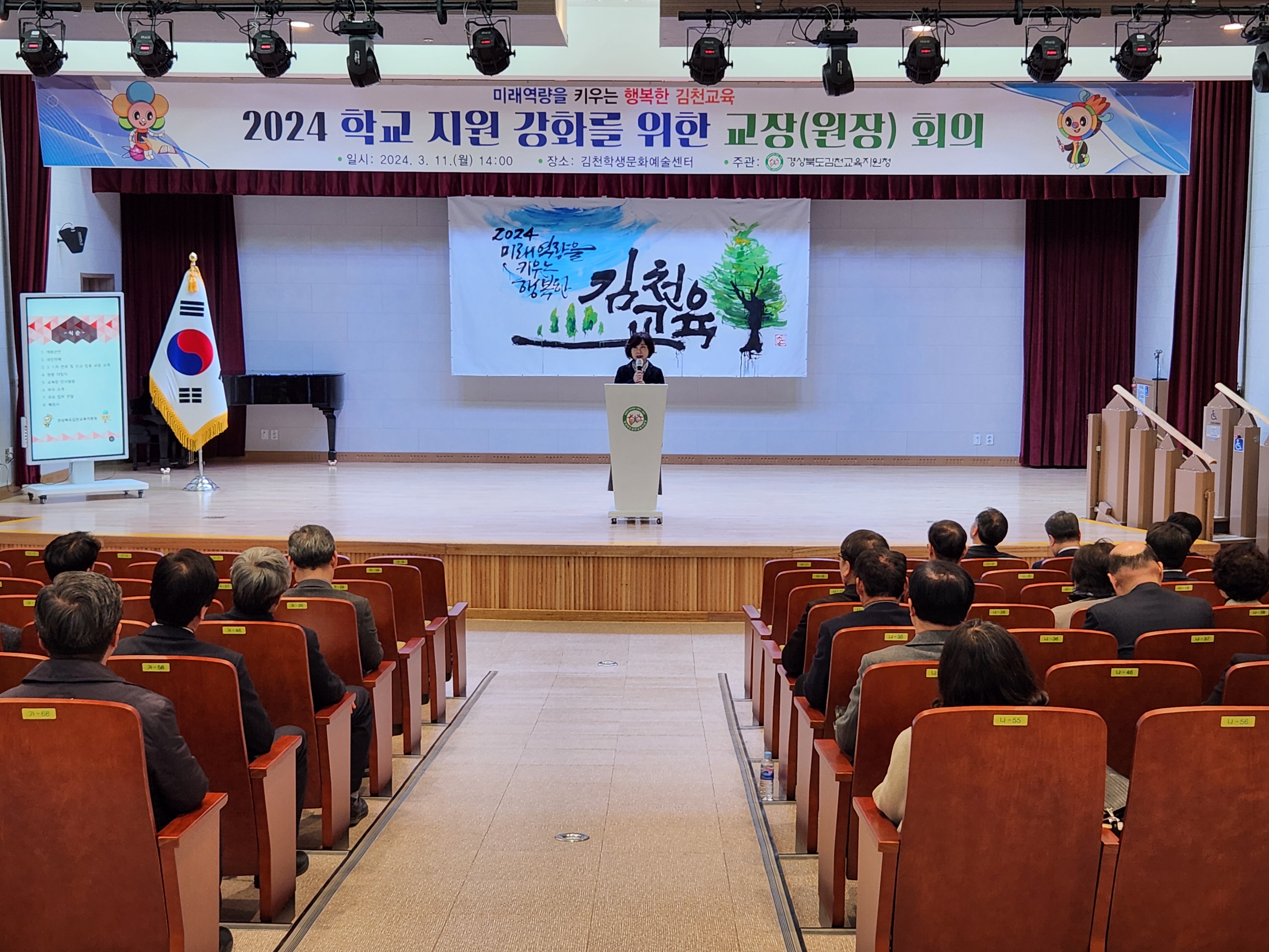 | 경상북도김천교육지원청(교육장 공현주)은 3월 11일,12일 양일 간 김천학생문화예술센터에서 ‘2024 학교 지원 강화를 위한 관리자 회의 및 청렴다짐식’을 개최하였다.